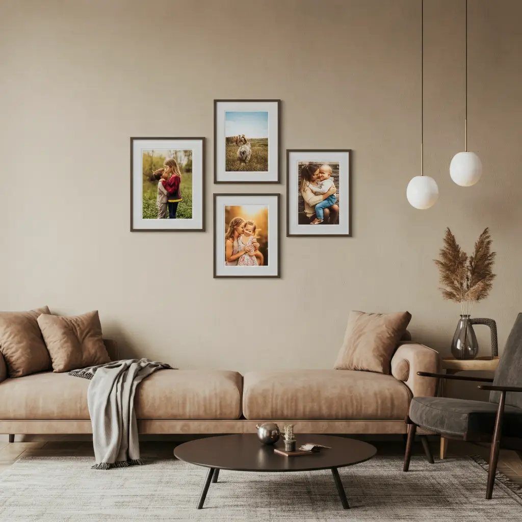 Smaller individual photos (4×6 inches) create intimate, detailed displays that work well in cosy spaces or as part of larger gallery walls. These sizes are perfect for smartphone prints or casual family snapshots that capture everyday moments.