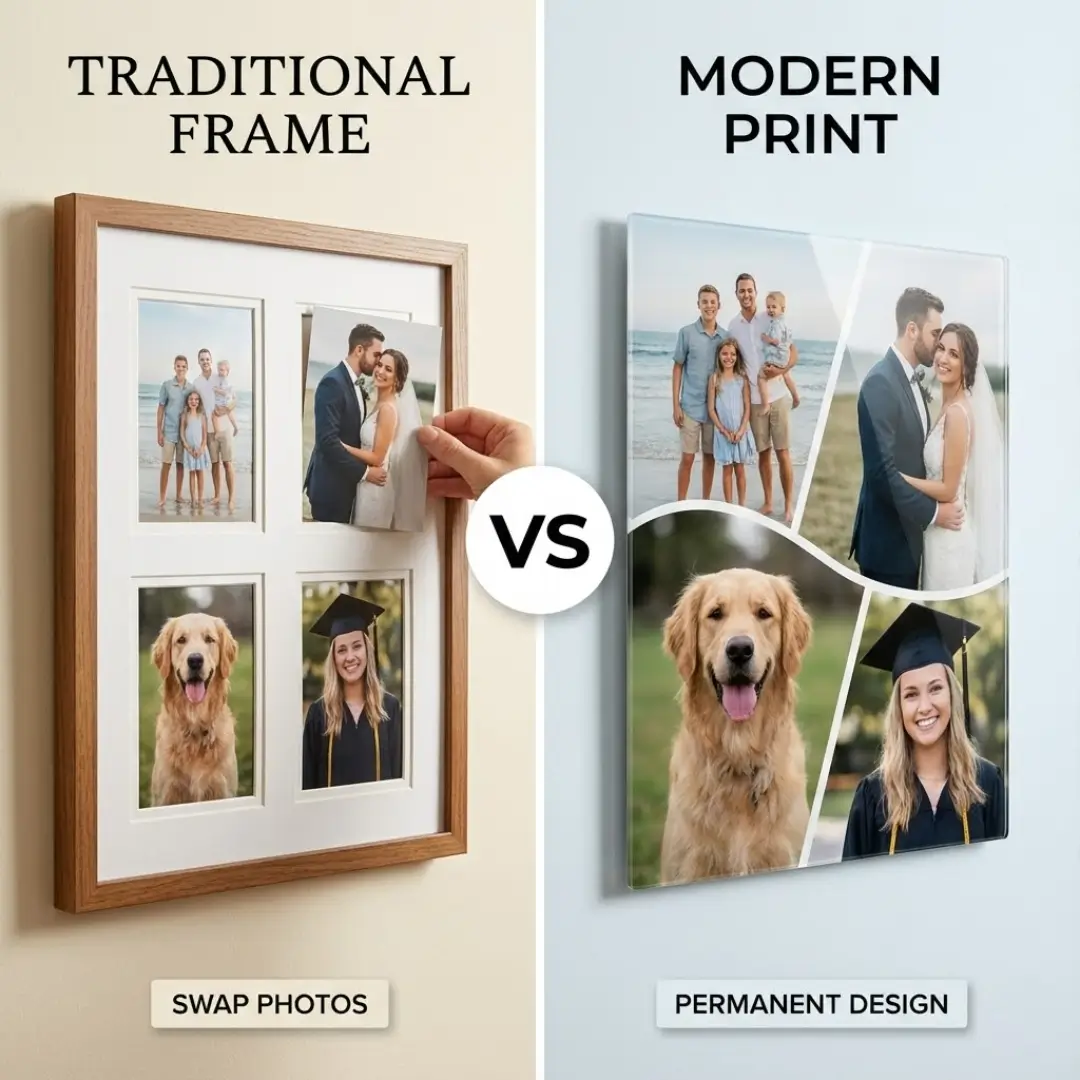 Here is a quick breakdown to help you visualize the collage photo frame vs collage print differences.