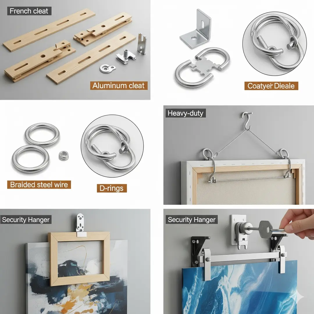 - Wire or D-Rings: Attach these to the back of heavier frames for easy leveling and secure hold.