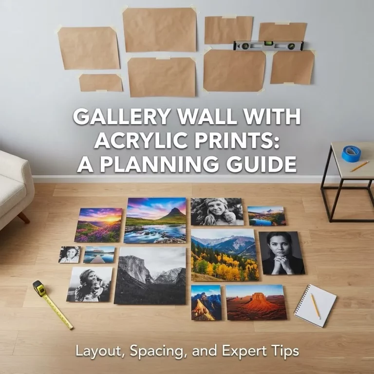 A: To achieve a professional look, ensure your photos are high-resolution, maintain consistent spacing between each piece (2-3 inches), and hang the collection centered at eye level. Choosing a high-quality printing medium like acrylic also elevates the overall look.